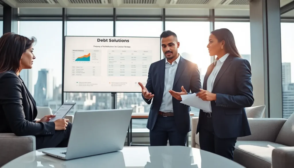 diverse team discussing debt management strategies in a modern office.